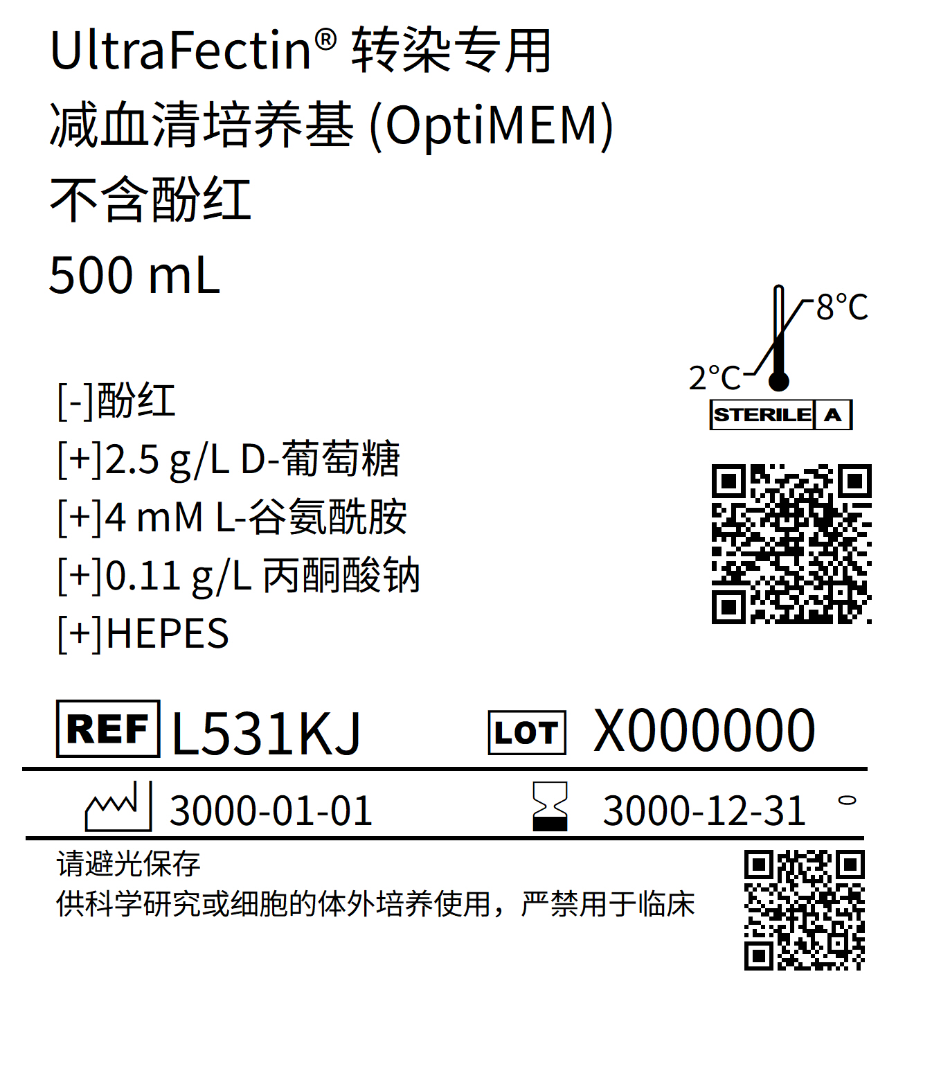 UltraFectin® Reduced Serum Medium, without Phenol Red, ADCF with L-Glutamine, Sodium Pyruvate and HEPES