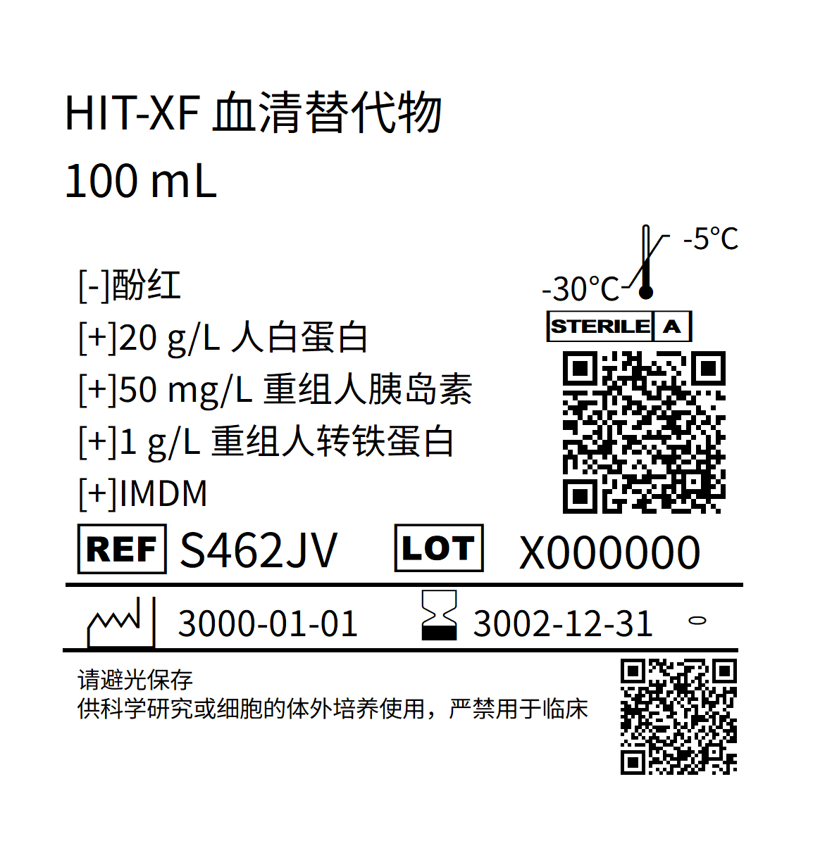HIT-XF血清替代物是人血清白蛋白、重组人胰岛素和重组人转铁蛋白的混合添加剂,在 IMDM培养基中配制。该添加剂不含异源性成分,主要用于支持人造血干细胞在无血清培养基配方中的生长。源培同时还提供含有牛血清白蛋白和重组人血清白蛋白的同类型添加剂,以供在不同的应用场景下使用。