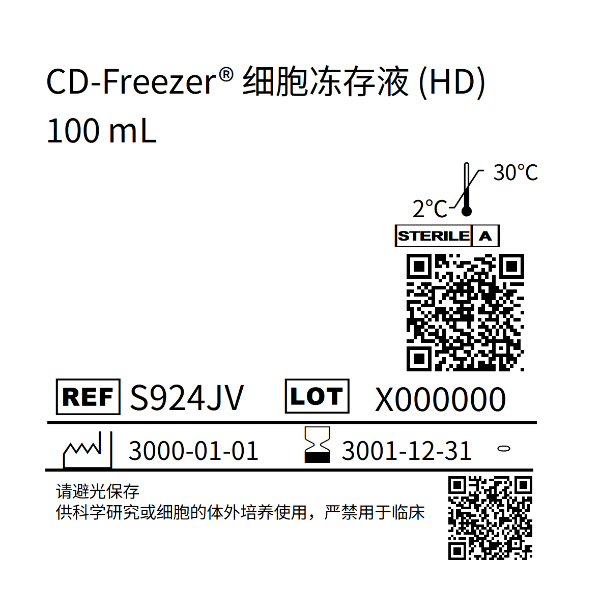CD-Freezer® 细胞冻存液(HD)是限定化学成分的高密度细胞冻存液,冻存的细胞密度最高可达5 × 108 cells/mL,复苏的细胞活率可达95%以上。本产品无需程序降温,可直接冻存于-80℃超低温冰箱